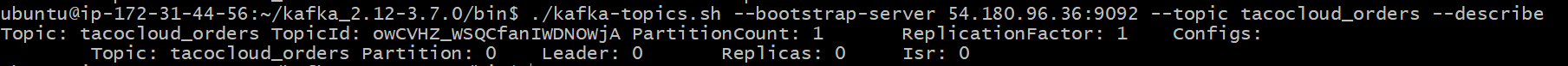 $ bin/kafka-topics.sh --bootstrap-server 54.180.100.188:9092 --topic tacocloud_orders --describe
