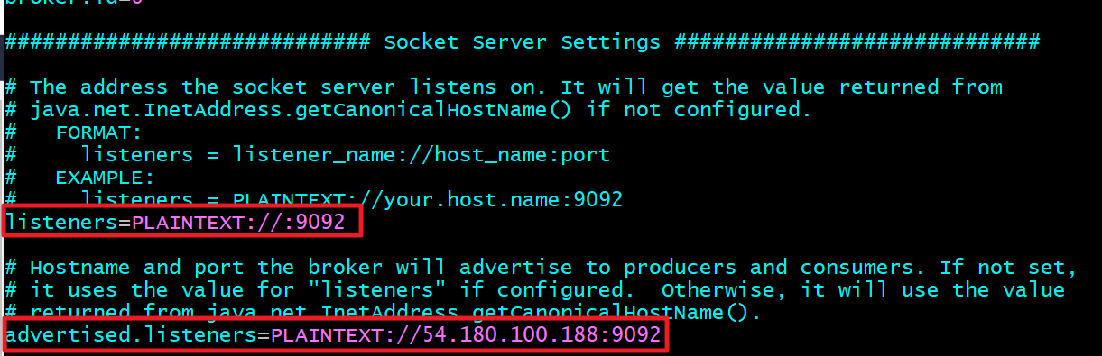 kafka_2.13-3.7.0/config/server.properties 내용중, 아래 빨간색 하이라트 부분을 수정합니다.