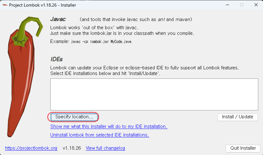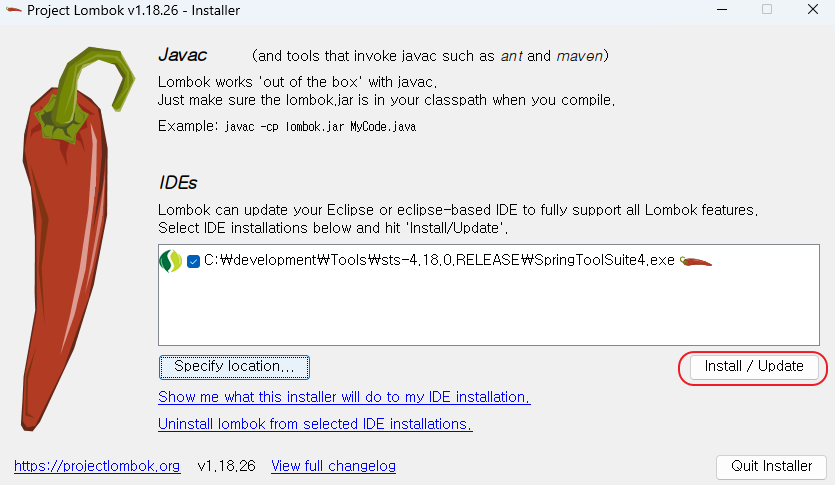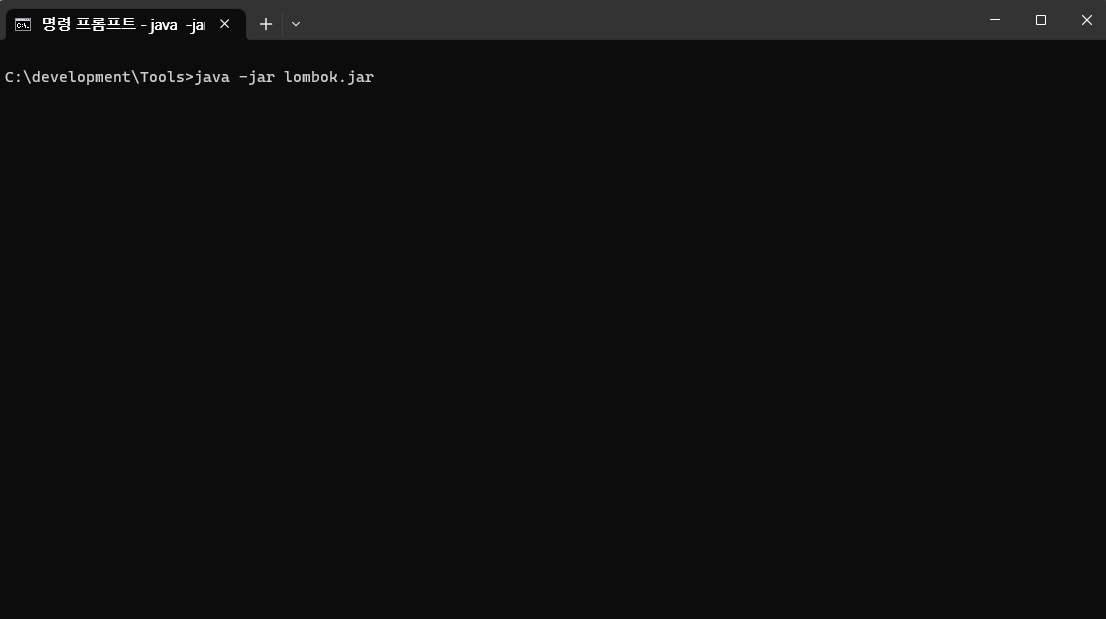 cmd창에서 lombok.jar이 위치한 경로로 이동한 다음, 아래와 같이 실행시킨다.